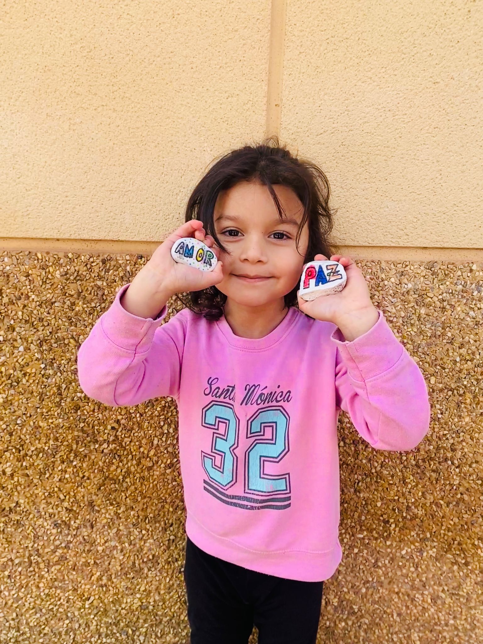 Primero los mayores de primaria nos ayudaron a conseguir piedras; ya en el cole las pintamos de blanco con pincel y témpera.