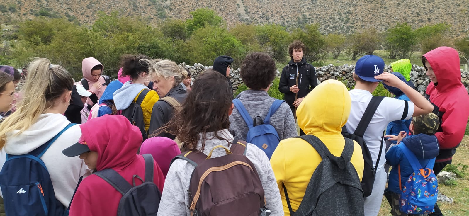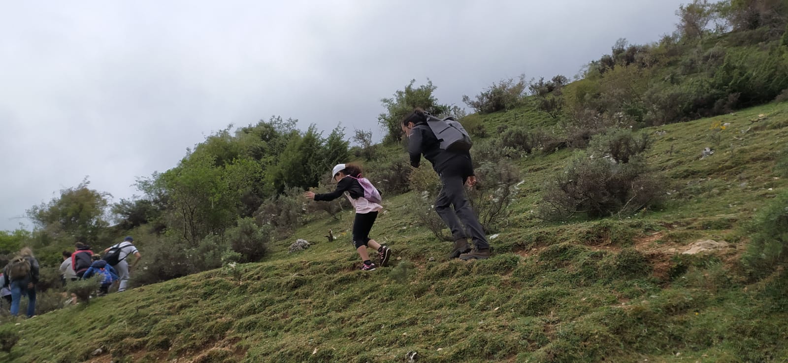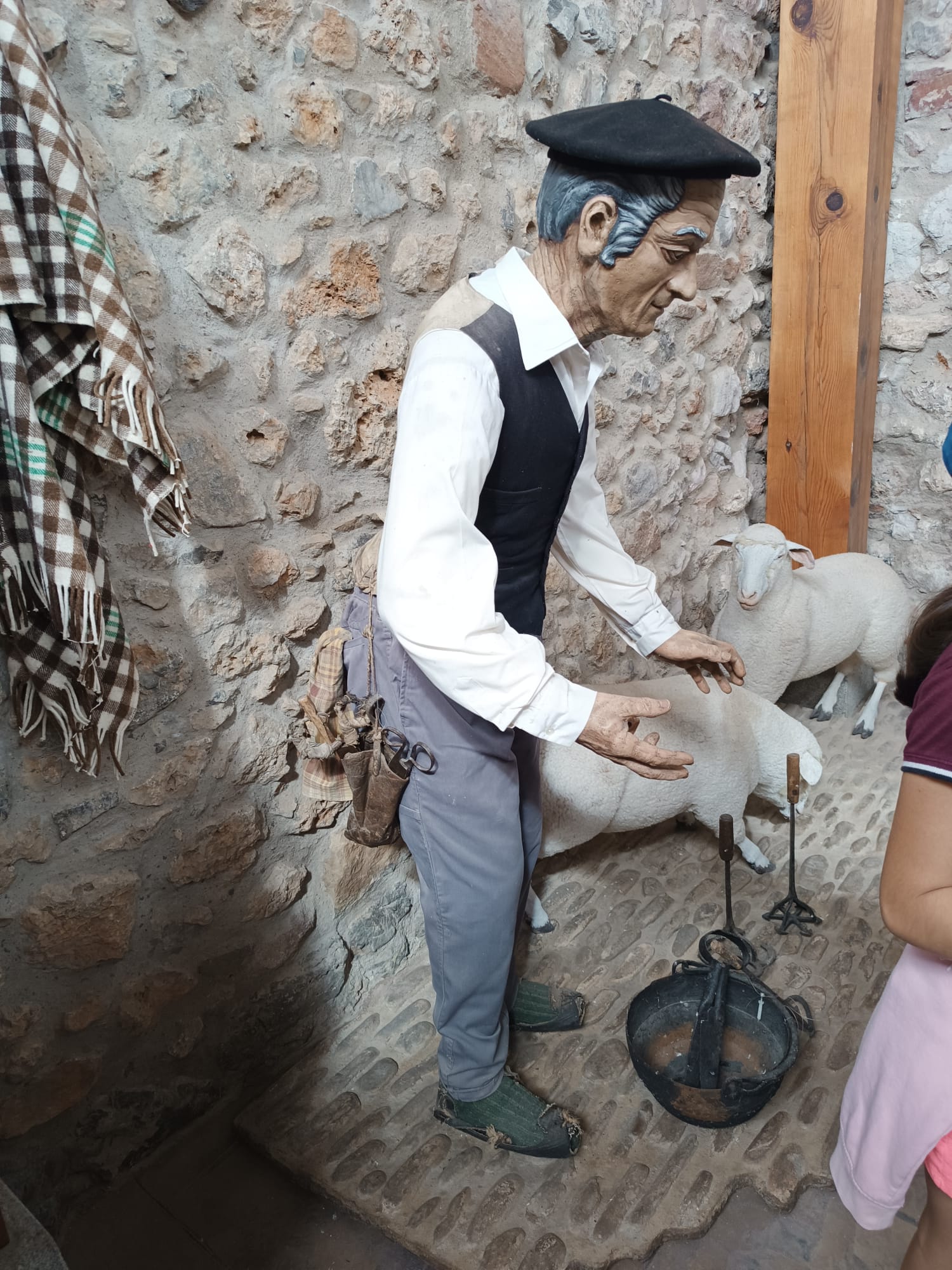 Posteriormente y tras un almuerzo para recuperar energías, salimos tal como ovejas, una tras otra, superando las cumbres y llegando a un pabellón en el que se refugiaban las ovejas de la lluvia que en esos momentos nos vino a visitar. Allí nos esperaba también su pastor que nos explicó muy bien el oficio de ganadero y pudimos aprender de ciertas artes curiosas en su quehacer diario con las ovejas.