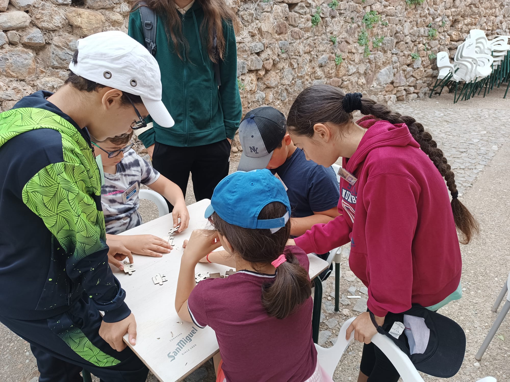 Nos dividimos en 5 equipos, mezclados con estudiantes de las 4 localidades del CRA, que se irían repartiendo con cada uno de los 5 monitores medioambientales que nos amenizarían la estancia durante toda la mañana.