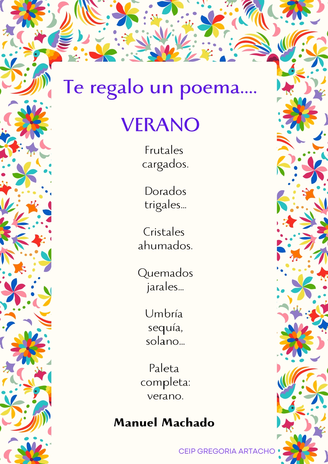 Llegamos al último día del curso y para finalizar os regalamos un poema que da inicio al verano de la mano de Antonio Machado.
