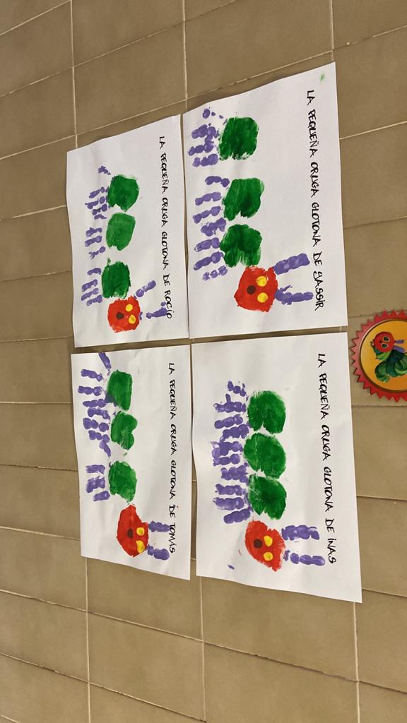 Hemos trabajado el cuento de La pequeña oruga glotona, gracias al cual hemos interiorizado los días de la semana y el nombre de alguna fruta, relacionándolo con la alimentación saludable.