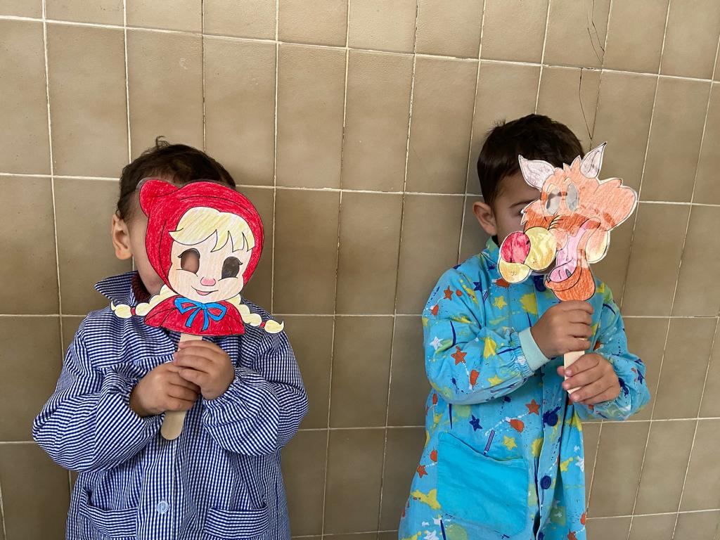 Cuentos de ensueño, cada día leemos un trocito de un cuento, hasta que ellos sean capaces de dramatizarlo y contarlo al resto de sus compañeros. Al finalizar con dicho cuento comenzamos con otro. Uno de los cuentos dramatizados, con máscaras y caretas ha sido Caperucita roja, favoreciendo así el desarrollo del lenguaje y la expresión oral.