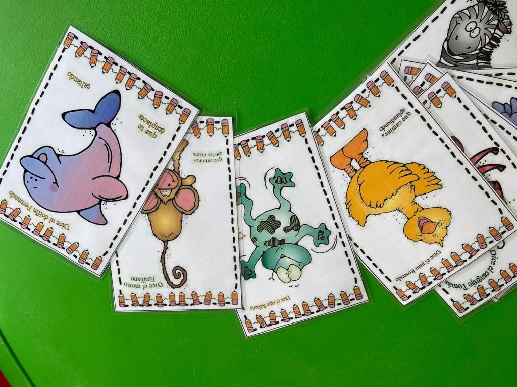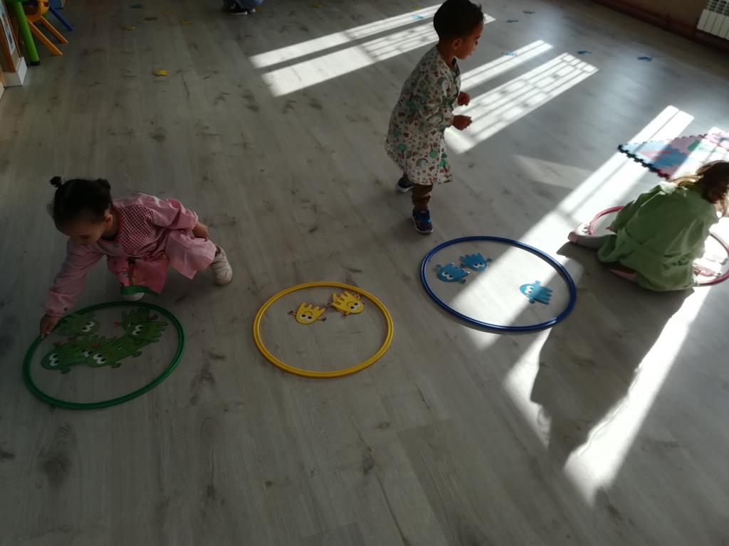 En psicomotricidad no solo trabajamos nuestro desarrollo motor, sino que aprendemos pareados que nos enseñan nuestros amigos los animales. Como por ejemplo:” dice el delfín Fernando que te desplaces saltando” o “Dice el oso Carmelo que te arrastres por el suelo”…
