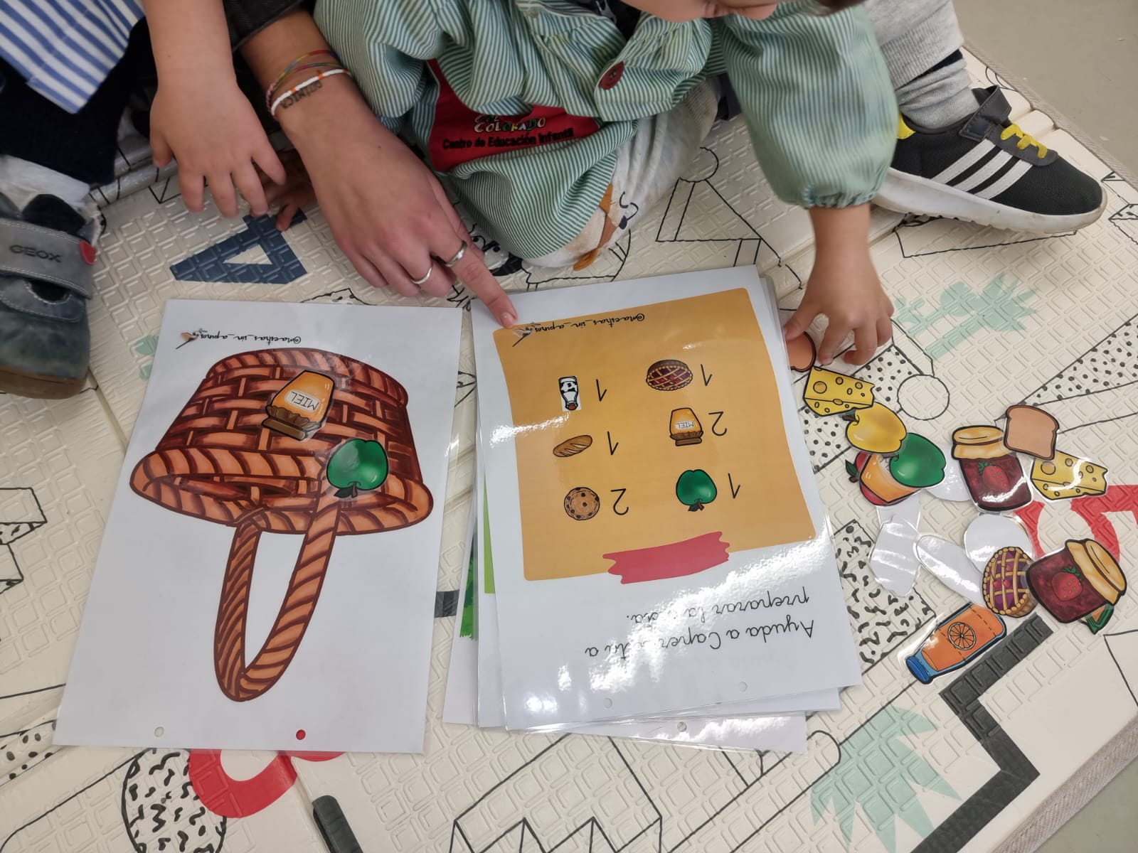 Hemos trabajado el cuento de Caperucita Roja y después hemos trabajado el libro creado por @maestras_sin_apuros de dicho cuento, en el cual se trabaja para esta edad, hacer la cesta con diferentes imágenes y números del 1 al 3, según nos manda.